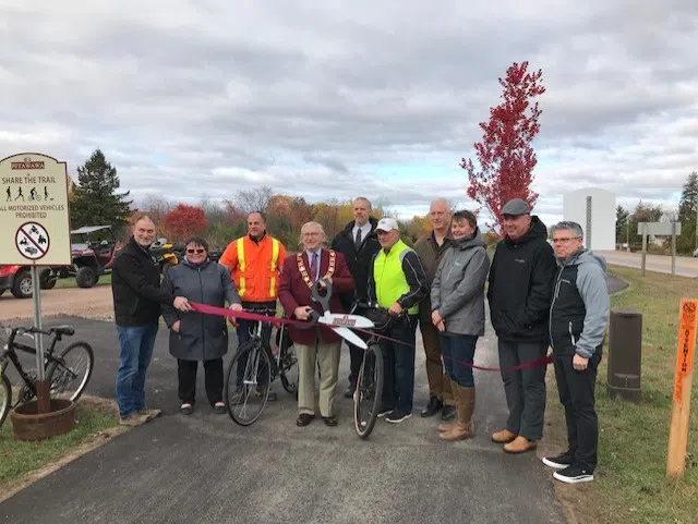 The twinning of the Algonquin Trail in Petawawa is officially complete now and the trail open to the public. On Friday morning, municipal councillors, staff and members of the local snowmobile and ATV clubs were on hand for the official ribbon cutting of the trail. The over two kilometre stretch of trail runs through the heart of Petawawa and is meant to keep non-motorized traffic safe. Recreation Manager for the town, Kelly Williams says it’s exciting to see the paved trail finally complete.