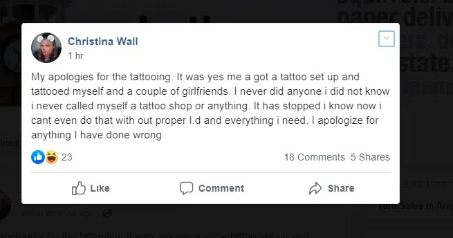The investigation revealed the operation was not following proper infection prevention and control procedures for disinfection and storage of the tattoo equipment in accordance with provincial standards. Officials say it was home-based and in downtown Renfrew they shut down.