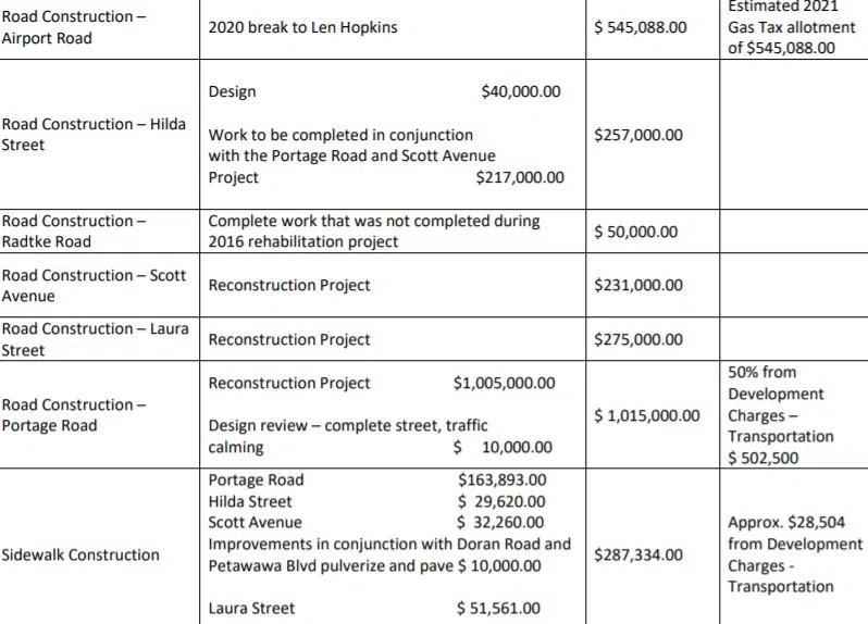 The Town of Petawawa has a number of other road projects and capital jobs identified in the draft budget.
