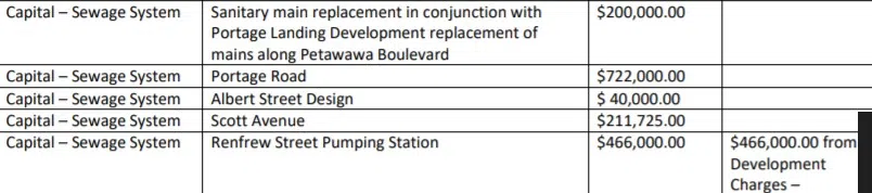 SNAPSHOT OF PUBLIC WORKS DRAFT BUDGET REPORT – PLANNED ROAD/SEWER/WATER WORK IN PETAWAWA