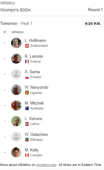 Kelly is competing in her first Olympic games and will run in heat number one which is expected to start around 9:25pm (eastern time). Kelly won bronze at the Canadian Olympic Trials to earn her spot in Tokyo.