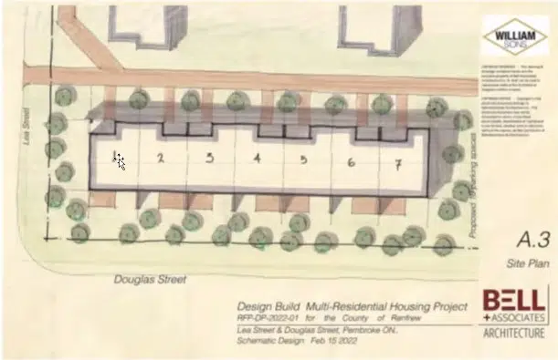 Plans for a new housing development with six affordable and supportive housing units have been presented to the County of Renfrew. Drawings and preliminary plans were presented to the Development and Property Committee on Tuesday, March 8th, 2022. The housing complex would be built at the corner of Lea Street and Douglas Street in the City of Pembroke.