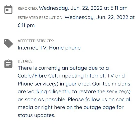Cogeco says technicians are working to resolve the situation and updates will be provided on social media and the Cogeco outage map.