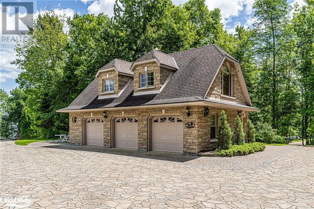The property also features a two bedroom coach house, a pumphouse by the water, a private gated entrance, a private sandy beach, a private boat launch and three garages with nine parking spots.