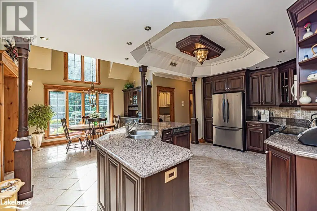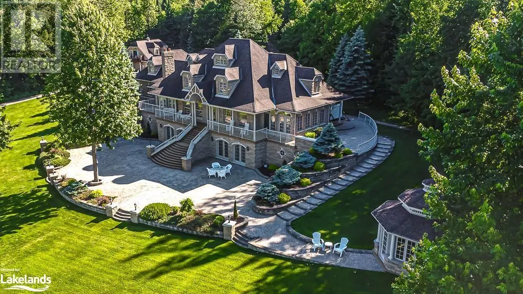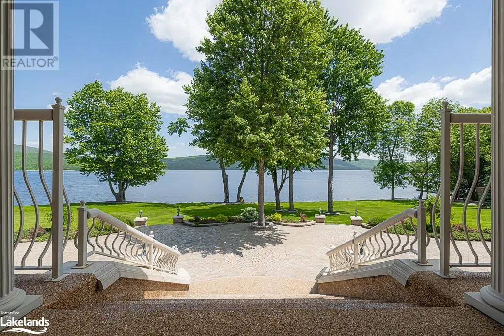 According to the listing on Realtor.ca, 445 Balmer Bay Road in Deep River is described as a “Great Gatsby Style” waterfront estate featuring an 8,000 square foot lake house on 2.64 acres with 363 feet of shoreline along the Ottawa River.