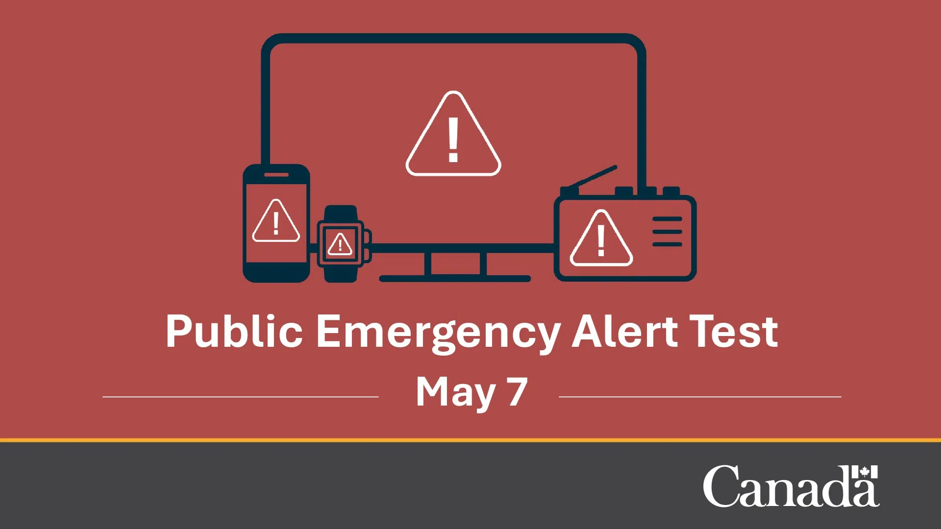 The test coincides with Emergency Preparedness Week, running May 4 to 10, which encourages Canadians to “Be Ready for Anything” by creating an emergency plan and preparing a safety kit.