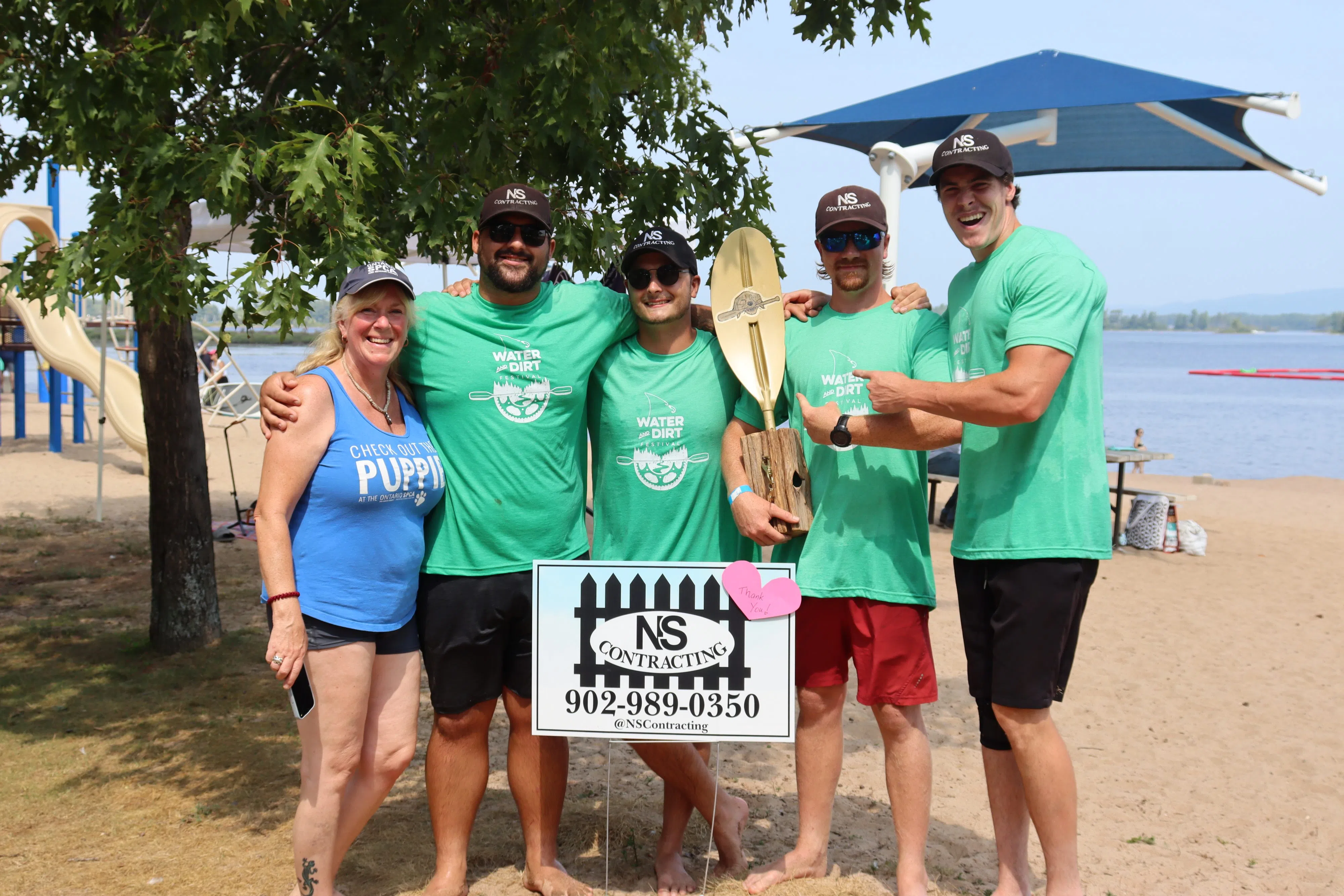 Team myFM led by General Manager Melissa Siegel flanked by her sons William and Nicholas and Sales Rep Sarah-Shea Cove paddled to a hard fought second place while the boys from NS Contracting took first place as well as the Golden trophy and bragging rights for the year.
