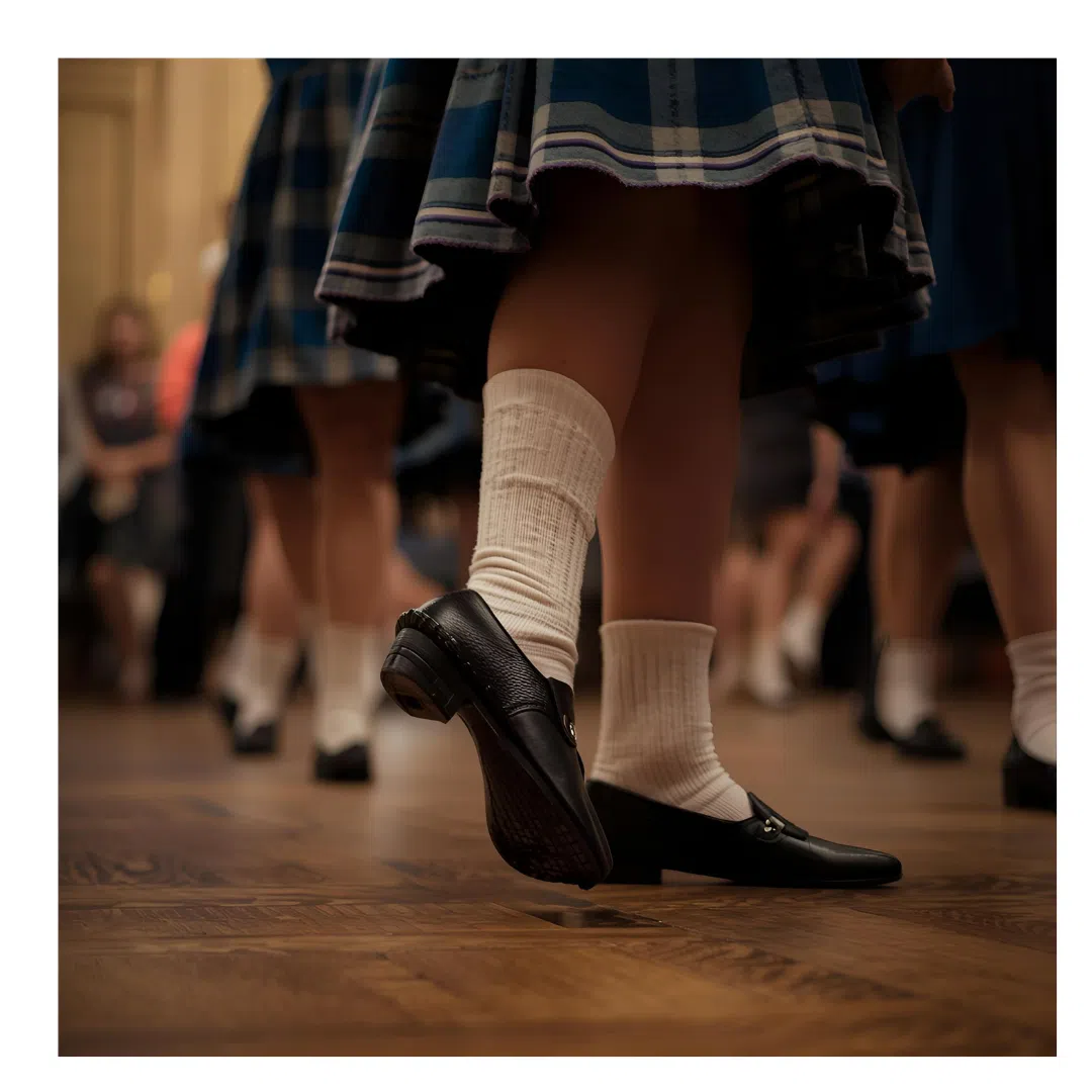Participants learn group dances set to reels and jigs, meet new people, and enjoy lively music in a social atmosphere.