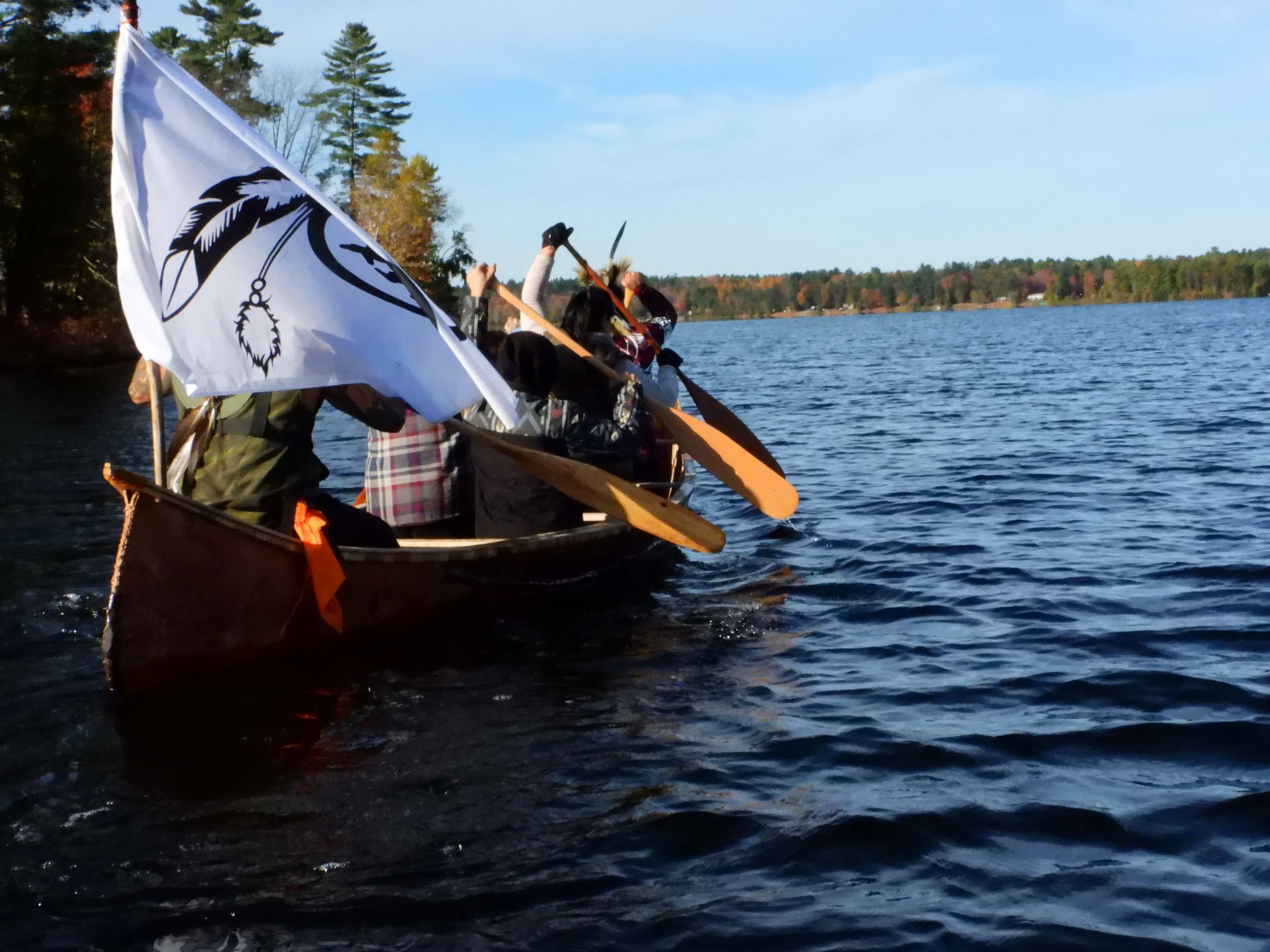 Pikwakanagan, Ontario, October 14, 2025 – For the first time in over 30 years, a newly crafted, traditional birch bark canoe touched the waters of Golden Lake. The Algonquins of Pikwakanagan First Nation Guardian’s Program, known in the Algonquin language as Neyagada Wabàndàngakì – Caretakers of the land, began crafting the canoe in the spring of 2023 using ancestral knowledge that has been passed down through the community for over 100 years. On Friday, October 10th, the crew of six set out in their 18-foot canoe on Golden Lake and made their way to the cultural grounds in a successful first journey.