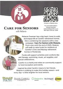 Melanie has the lofty goal of raising $12,000 and with the attitude and perseverance she has displayed there is no reason why she can’t achieve that goal with the support of the generous folks of Pembroke and area.