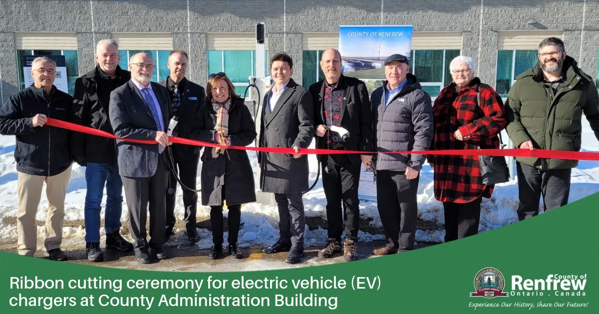 Renfrew-Nipissing-Pembroke MPP Billy Denault recently joined County Warden Jennifer Murphy, as well as county councillors and staff, to officially open a dozen new publicly accessible electric vehicle chargers located at their administration buildings in Pembroke and Renfrew.