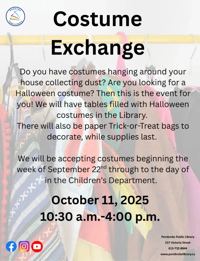 Dig out those old Halloween costumes from past years, that you'd like to get rid of, bring it to the Library and see if you can find a treasure or two of costumes that you could use this year. Adults and kids alike.