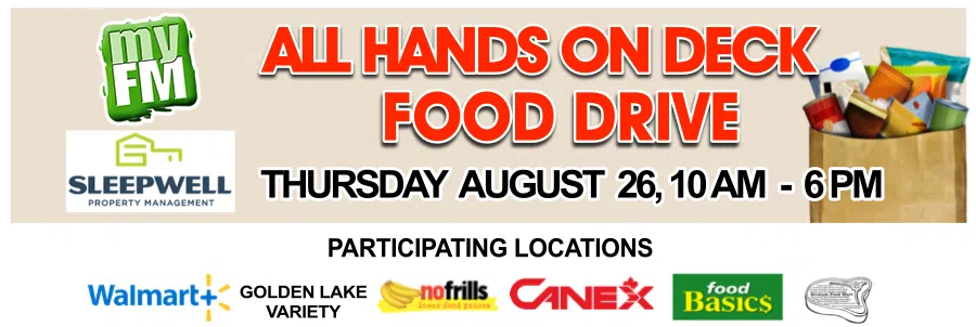 myFM and SLEEPWELL PROPERTY MANAGEMENT’S All Hands On Deck Food Drive